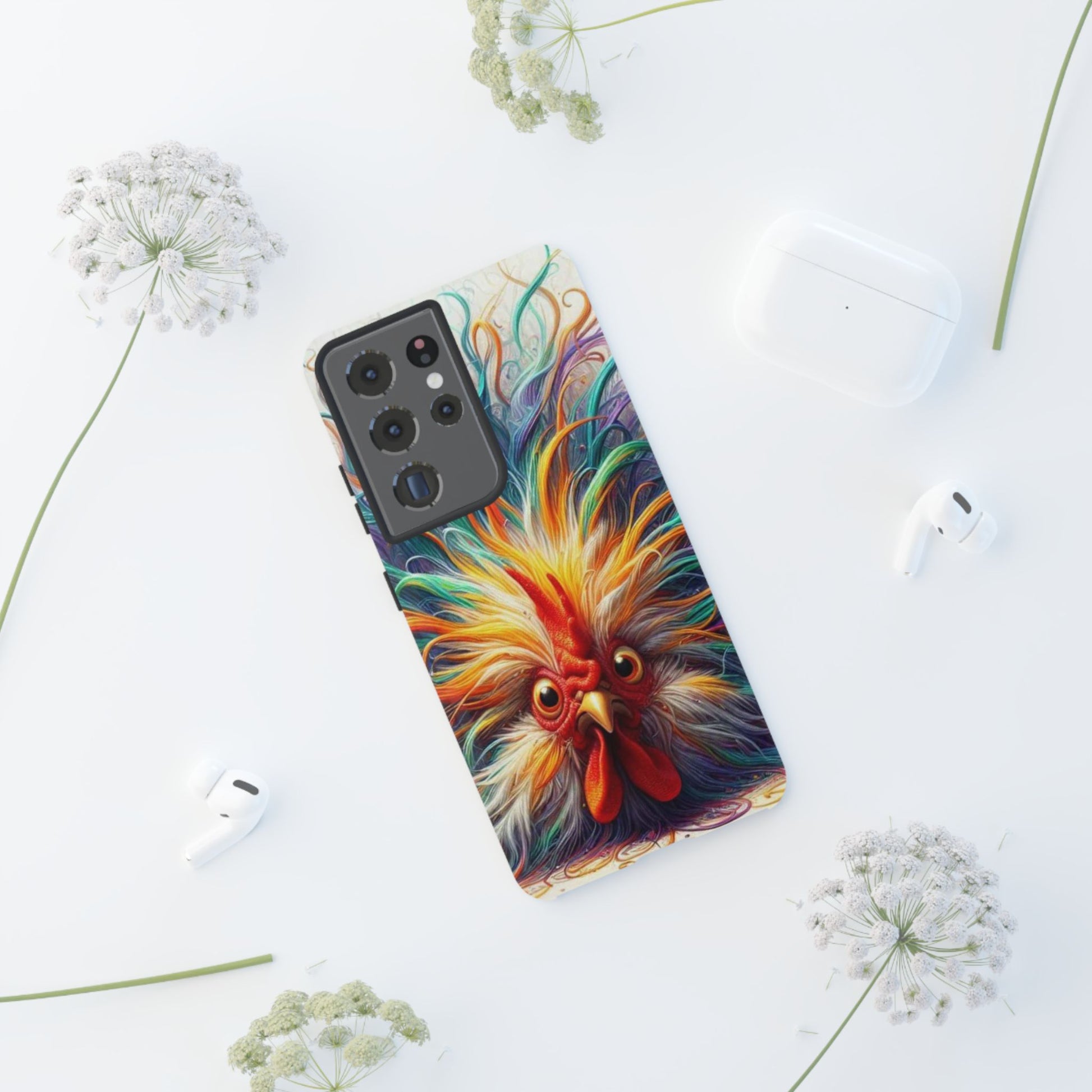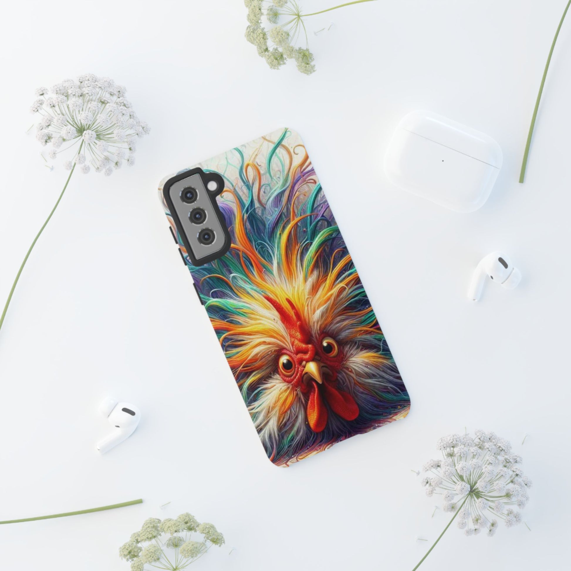 Protect your phone with this tough phone case featuring a frazzled feather friend design. The durable 3D wrap provides full ink density transfer and UV protection, making it resistant to outdoor weathering. The silicone liner absorbs shock from impacts, while the custom polycarbonate shell offers extra durability. This phone case is perfect for anyone looking to add a touch of whimsy to their everyday tech accessories.